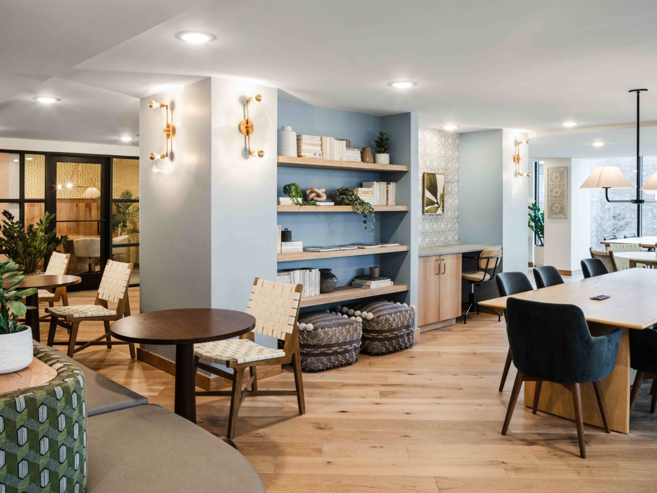 Rambler offers carefully curated amenity spaces to meet the modern student’s every need. The ground level is marked by the vibrant, bustling lobby complete with an on-site leasing office, an integrated coffee shop (Daydreamer Cafe) and a variety of study spaces. Just upstairs, the second-floor study mezzanine offers multiple private study spaces and conference rooms, perfect for collaboration or solo work. Additionally, on the first floor just off the lobby, you’ll find Rambler’s record room. This room is an homage to the eccentric Austin music scene, and provide the perfect space to study or lounge.